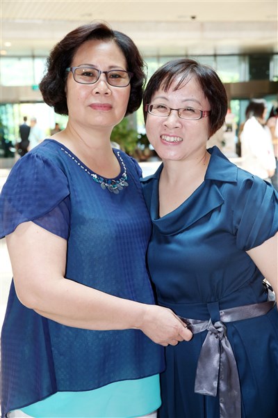 2014「第5屆彩繪希望創作展」今天在台北三總舉行開幕式,病友代表李金蓮(左)及彭如真(右)在會中分享,如何透過繪畫抒發抗癌的心路歷程。圖/徐兆玄