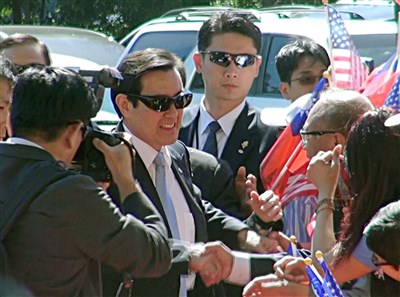 總統馬英九結束中美洲訪問行程,3日下午(當地時間)過境美國舊金山,受到僑胞熱烈歡迎,馬總統也一一與僑胞握手致意。圖/中央社