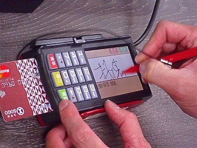 聯卡中心通路推展部業務副科長林威志指出,刷卡電子簽名,與傳統刷卡方式完全一樣;持卡人刷卡後,在面板上用觸控筆簽名完成交易,交易電文會啟動機器,列印出「持卡人存根聯、電子發票及銷貨明細」交給持卡人,商店則取得商店存根聯。