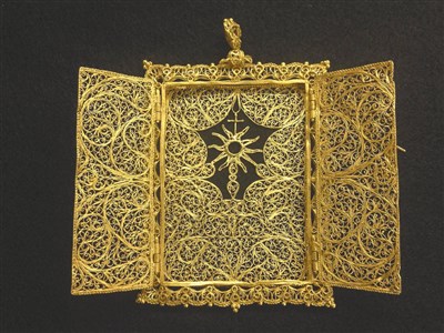 這個聖餐盒重一盎司(約二十八克),約為iPhone手機大小,有可以合上的蓋子,約在一六○○年代晚期到一七○○年代初期製成。神父用鍊子串起聖餐盒並掛在胸前,裡面放聖體,將聖體分給信徒。從做工精細、極具美感看來,可能是教會高層所有。擁有沉船所有權的皇后珠寶公司說:「這是無價之寶,獨一無二。」