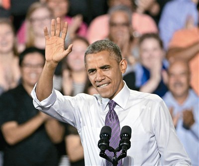 美國眾議院授權議長貝納代表控告歐巴馬(右圖),當天在密蘇里州演講的歐巴馬公開表示不滿;同一天,蜜雪兒(左圖)在華盛頓演講時表示歐巴馬的「平等與尊重」深深打動她,言談中透露對丈夫的無限支持。圖/美聯社、路透