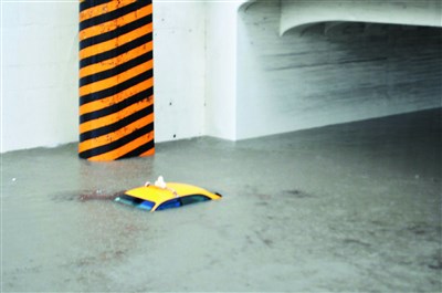 台南市下起大雨,一輛計程車被泡在小東路地下道,幾乎快滅頂,陳姓計程車司機及時逃出。 圖/黃宣翰