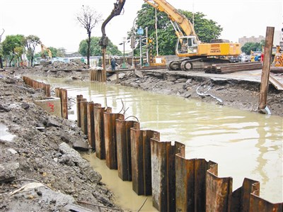 水利局長李賢義說,預計兩周內完成三多路段和一心路段兩側民宅的鋼板樁打設作業。
