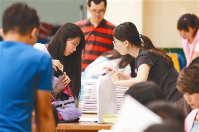 十二年國教二免放榜昨天進行報到,學生與家長陸續到學校報到,辦理報到相關手續。圖/林伯東