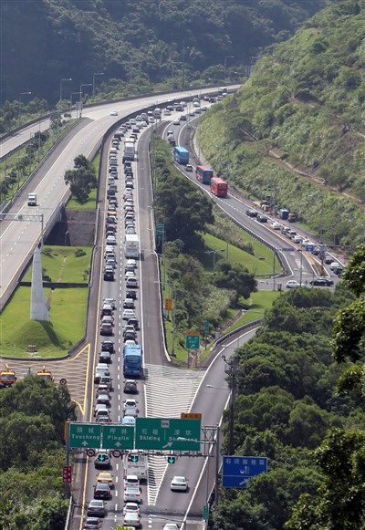 今天是國道5號試辦時段差別費率首日,一早台北往宜蘭仍舊塞車,圖為國道5號石碇路段。圖/中央社