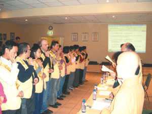 紐西蘭北島協會新會員聯誼會,由會長楊比得簡介佛光會對外的慈善事業之發展、寺院道場以讀書會、快樂營等培育青年、兒童之教育課程及菩提長者、助念團等不同年齡層之文化教育活動。