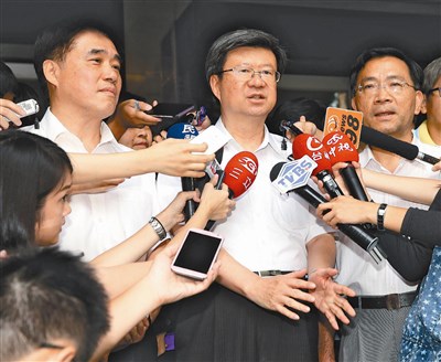 教育部長吳思華(中)昨天邀集各縣市首長開會,商討十二年國教入學制度改革問題達成突破性共識,會後與台北市長郝龍斌(左)、台中市副長蔡炳坤(右)一起舉行記會表示,基本上,明年採「一試兩用」,授權各區決定是否續辦特招,是否先特後免,尊重各區決定。圖/黃義書