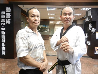 建國科技大學教授洪榮聰(右)和他的大哥洪翊程都喜歡跆拳道,兄弟兩人合計15段。圖/簡慧珍