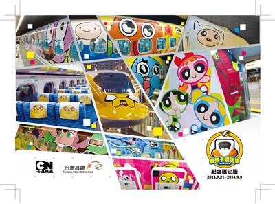 高鐵公司說,去年7月21日起,與卡通頻道合作推出「歡樂卡通列車」,「阿寶」、「老皮」等卡通明星身影出現在車箱上,深受卡通迷及鐵道迷喜愛。