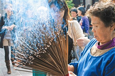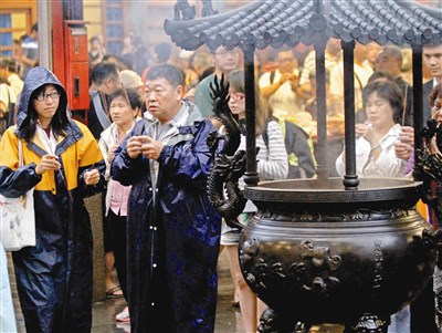 為落實環保,行天宮昨天表示,明起不再設置大香爐和供桌,民眾以雙手合十取代線香即可,也無須準備供品。圖/資料照片