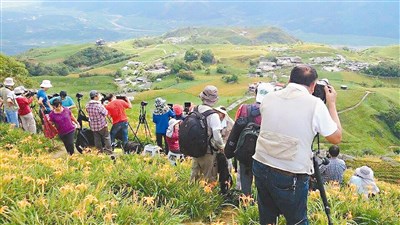 攝影道德之死又一樁,花蓮六十石山金針花盛開,有攝影學會人員為拍攝美景,大批人馬及腳架踩入金針花田,有人拍下此一情景貼上臉書,引起大家撻伐。(圖/中央社)