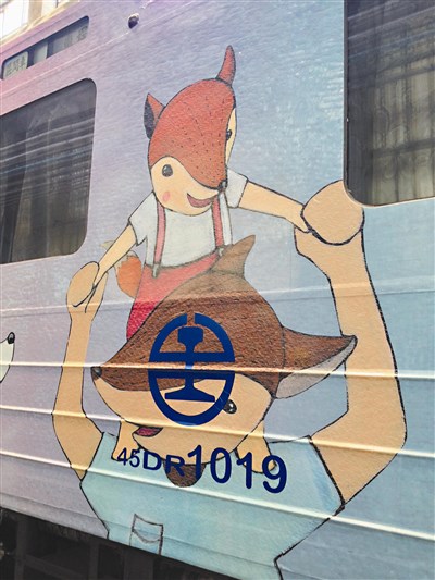 內灣線火車彩繪的新圖案增加可愛的卡通漫畫,呈現內灣線風土人文、懷舊鐵道歷史等。
