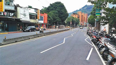 圖為在文山區景中街新畫設的「折線型標線」。圖/台北市交通局提供