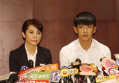 藝人柯震東(右)涉嫌在北京吸大麻遭拘禁後獲釋,30日凌晨返台,下午與經紀人柴智屏(左)一同召開記者會,再度向社會大眾致歉。圖/中央社