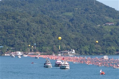 今年總計有2283隊報名參加,28國的國際選手1289人參加,泳渡盛會也在225名身障泳士率先出發下揭開序幕,挑戰全程約3000公尺的日月潭水道。台中市殘障福利協進會選手黃義時克服小兒麻痺的障礙,55分鐘完成挑戰,成為首位達陣的身障泳士。
