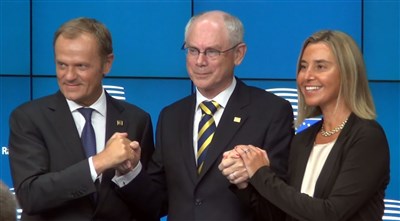 現任歐盟理事會主席范宏畢率領圖斯克與墨格里妮出席記者會,並以圖斯克帶領波蘭渡過經濟危機,在歐洲其他國家經濟陷入衰退之際,仍維持波蘭經濟成長,且從未陷入衰退,肯定他的能力。圖斯克也是首位東歐國家領導人擔任歐盟理事會主席。