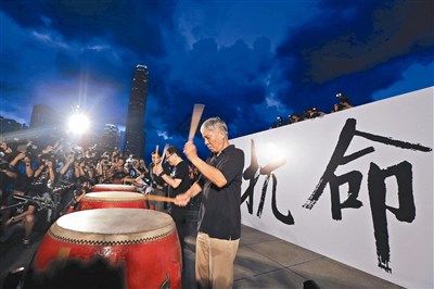 中國大陸全國人大常委會昨天通過決定香港特首須由提名委員會提名,香港泛民派大為不滿,「占中」領導人鳴鼓,率眾在香港商業及金融中心中環抗議。圖/路透