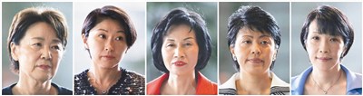 山谷惠理子(左起)、小淵優子、松島綠、有村治子、高市早苗