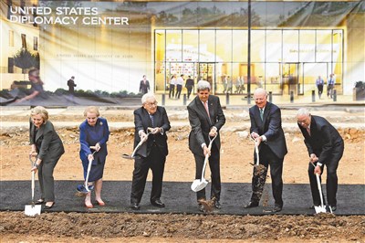 【本報綜合外電報導】美國國務卿柯瑞三日在千載難逢的機會中,與五位前任國務卿齊聚一堂,參與美國外交中心博物館動土儀式,並警告美國外交政策在騷亂的世界上,依然扮演和平與穩定要角。