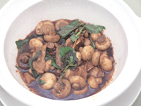 《新元氣健康美食》三杯蘑菇 示範:新天地 李耀堂 |2007.01.22 語音朗讀 361觀看次 字級 大 中 小 材料:蘑菇二五○克、老薑十克、九層塔五克。調味料:胡麻油、素沙茶醬及素蠔油各二大匙。醇米霖一大匙。作法:1.將砂鍋預熱,老薑切片,蘑菇入鍋汆燙後撈起備用。2.胡麻油起鍋後用薑片爆香,加入素沙茶醬、素蠔油、醇米霖調味,再放入蘑菇翻炒。3.將食材倒入預熱好的砂鍋,加入九層塔拌炒即可享用。「新元氣健康美食」每周一至周五下午五時三十分,在人間衛視(第七或第八頻道)播出。 前一篇文章 《當家新鮮事》過期書報是吸油高手 下一篇文章 《風華女性》談不成戀愛的女兒 熱門新聞 01伊朗示威恐2萬死 川普:援助在路上2026.01.1502瑕疵品反爆紅 哭哭馬賣到缺貨2026.01.1403南亞偏鄉師參學新馬寺 交流創意教學法 2026.01.1404平價版人類洗澡機 預計年底開賣2026.01.1405日電鐵貴志站 任命第3代貓站長2026.01.1406重慶川普紅不讓 談旅遊給人歡喜2026.01.1407和韻新語國樂音樂會 佛館登場2026.01.1408星雲大師全集【傳記】百年佛緣─社緣篇 與佛菩薩感應記 4-22026.01.1409【我行遲遲】零下十四度的盛世2026.01.1410台美關稅 可望降至15%2026.01.14 訂閱電子報 台北市 天氣預報 台灣一週天氣預報 相關報導 【生活快門】可愛七龍豬【舒心自在】人生泳池【生活快門】努力向上【耐心等待】馬鈴薯開花【幸福心理會客室】以陽明學啟迪青少年【生活快門】環保地球儀