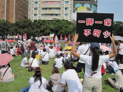 活動發起人廖儷湘表示,依照幼照法規定幼兒園,大班至少需要聘用一位合格幼教師任教,但業者卻高喊聘不到幼教師,要求修法讓幼兒園不需要聘用幼教師,未來恐怕教學品質下降,影響幼兒受教權。
