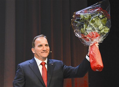 換人做 瑞典十四日舉行國會選舉,反對派社會民主黨領導的左傾聯盟險勝中間偏右的現任政府,執政八年的總理萊恩菲爾德宣布政府十五日集體請辭。上圖為社會民主黨領袖勒夫文當天對支持者發言。圖/法新社