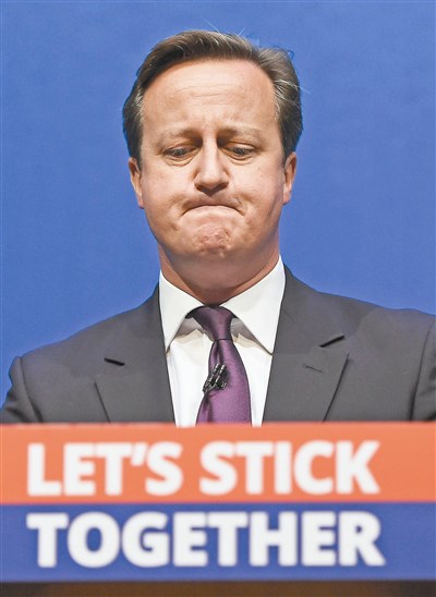 其實獨立公投會走到這一步,要怪卡麥隆的失算。他二○一二年在愛丁堡與蘇格蘭第一部長薩蒙德簽訂愛丁堡協議,同意讓蘇格蘭舉行獨立公投時,絕未料到英國可能斷送在他手上。