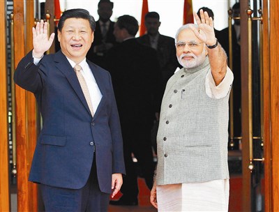 習近平到訪前夕,印度總理莫迪在其個人推特上留言說「如果讓我形容印中關係潛力的話,我會說印中(INCH)將走向特殊協同的世紀(MILES)」,其中借用了兩個英文縮寫(INCH英寸)和(MILES英里),來形容中印關係將出現飛躍性的發展。莫迪在另一條推特留言中還說:「印度和中國之間獨特的化學反應可以譜寫歷史,並為整個人類創造更好明天。」