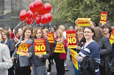 支持蘇格蘭獨立的民眾與反對蘇格蘭獨立的民眾(圖/美聯社)十六日分別上街較勁拉票。