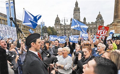 另一方面,蘇格蘭公投前夕,各國紛紛發聲示警,除了美國公開表態盼蘇格蘭留在英國,西班牙也表明,蘇格蘭獨立後若想加入歐盟、還得花五年;這些聲音讓蘇格蘭人既擔憂又憤怒,決戰時刻兩方都不敢大意。