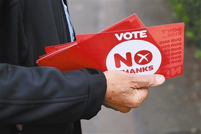 蘇格蘭首席大臣薩蒙德則受到一千五百名獨派支持者巨星般的歡迎,他說,誓言建立一個永遠排除南方勢力、真正屬於蘇格蘭的國家。
