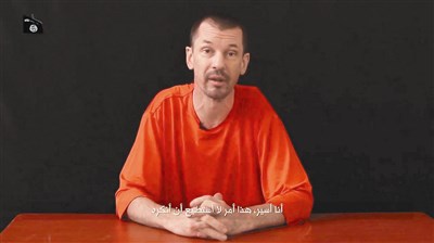 IS此前一連發布三名人質被斬首的殘暴影片,但在最新影片中,被擄英國記者康特利對著鏡頭發言,呼籲西方停止對IS的軍事干預。影片中,康特利穿著橘色囚衣(圖/美聯社),用播報新聞的方式對鏡頭說話。他語氣鎮定,坦承自己是人質,並透露自己可能步上其他人質後塵被殺。他也預告將發布一系列影片,揭露IS的「真實面貌」,反擊西方國家媒體扭曲該組織、操弄事實。就影片看來,他的生命沒有受到立即威脅。