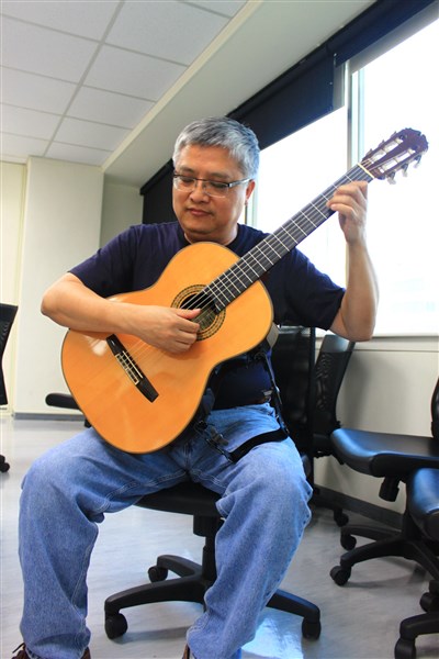 工研院系統軟體組工程副組長許宗錡是古典吉他的好手,也為同仁開課,分享古典樂歷史,啟發聆聽古典樂。圖/郭政芬