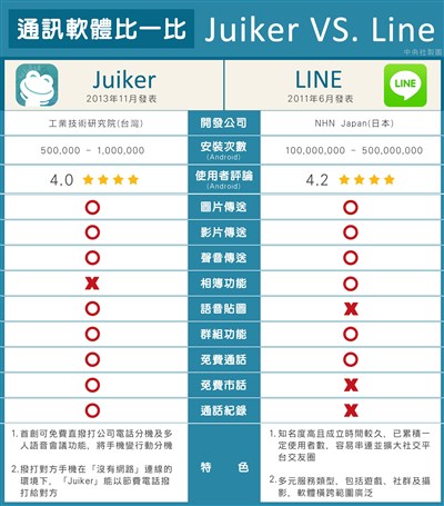 【本報台北訊】公務員禁用LINE談公務,因此行政院長江宜樺的手機裝的是工研院研發的Juiker(揪科)。工研院表示,企業專用通訊平台Juiker讓手機變成分機,還可自動判別最佳撥號路徑。