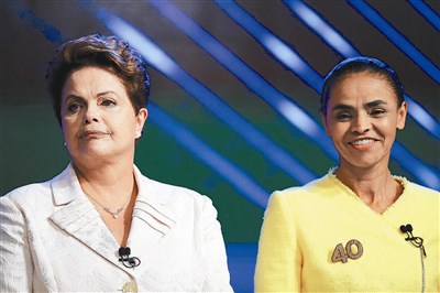 巴西五日舉行總統大選,現任總統羅賽芙(左)與對手席瓦參加電視辯論。圖/路透