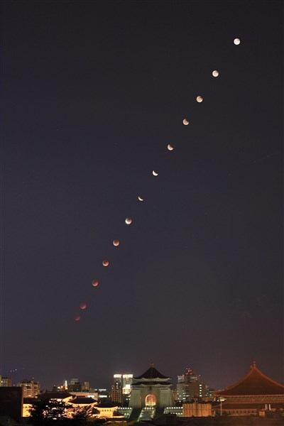 圖為2007年8月28日月全食的連續影像。 圖/本報資料照