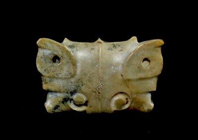 新北市十三行博物館展出石家河文化玉器,圖為具有避邪、守護意義的「玉虎」。圖/中央社