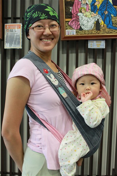陳媽媽的第二胎寶寶由助產師幫忙接生,今天帶著寶寶出席記者會,分享溫柔生產的好處。 圖/鄧桂芬