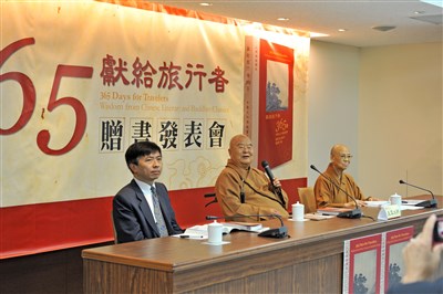 大師表示,50年前看到旅館的房間裡都擺著《聖經》,那時便發願要編1本以中華文化為基調、融合佛教經典、古聖先賢智慧的寶典,為大家在人生旅途上指點迷津,所以他特別將書名訂為《獻給旅行者365日》,希望旅人能每天閱讀此書而受益。