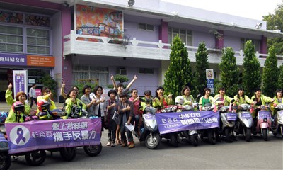10多名歐巴桑,今起一連4天將騎機車進行「乘風傳愛之旅」,除了實現追尋自己的夢想,也利用凸機車追風的機會宣導反暴力。圖/中央社