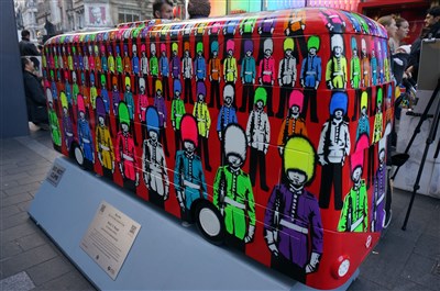 在人潮眾多的科芬園,則是以「罌粟園」為主題的巴士雕塑,還有以皇室衛兵帽子為造型的巴士雕塑,而在比卡迪里廣場安排由知名時尚企業Cath Kidston,以集結白金漢宮、倫敦塔橋等倫敦知名地標的圖案繪製巴士雕塑。