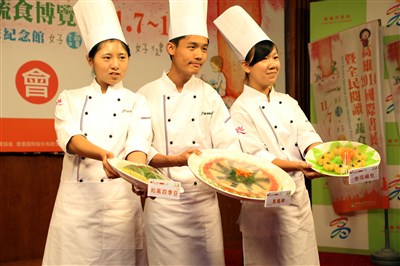 普門中學餐飲科學生製作蔬食料理,記者會展示上菜秀。圖/人間社記者陳昱臻