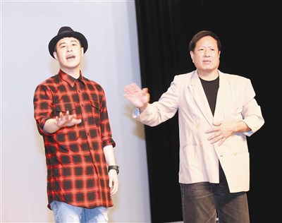 藝人潘瑋柏(右)傷後復出,昨天應實踐大學學生會邀請,與擔任副教授的父親潘志偉(左)對談。圖/邱德祥