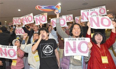 電視畫面上,可以看到數十名抗議者在鹿兒島縣議會旁聽席高喊:「我們反對重啟。」