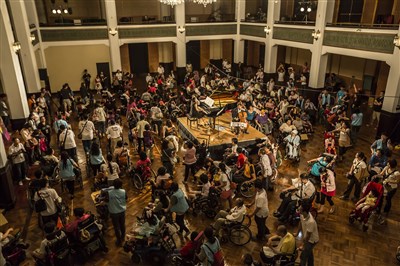 舞台特別搭在廳內中央,讓輪椅族抬頭即可看到;每演奏兩首,舞台還用人工轉動,讓坐在各處的輪椅族都可看到音樂家,末了還能隨著圓舞曲轉圈跳舞。中山堂還將廣場顛簸的歐式石板路,改為一般路面;洗手間則加裝無障礙坡道。