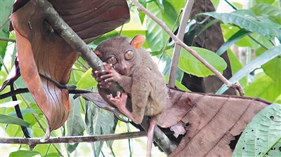 貓頭鷹的頭、蝙蝠耳朵、壁虎腳、老鼠尾巴、外星人一樣的臉,這是世界上最小靈長類動物「眼鏡猴」,只產於菲律賓中部地區保和島的瀕臨絕種動物,晝伏夜出,白天攀附在樹枝上,動起來像電影中的慢動作。