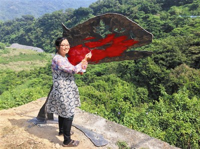【本報綜合報導】「台灣原住民族文化園區」邀請原住民藝術家到園區駐園創作兩個月,來自阿里山來吉部落的不舞‧阿古亞那用「鐵」創作,在園區琉璃珠吊橋旁的懸壁,立起一隻「飛躍的鐵山豬」,並漆上鮮紅的油漆,創造出山豬飛奔向吊橋的意象,成為園區亮眼的藝術品。