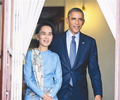 歐巴馬當天在翁山蘇姬位於仰光湖濱的住宅,與這位民主運動領袖展開歷史性會談,兩人會談後舉行聯合記者會。