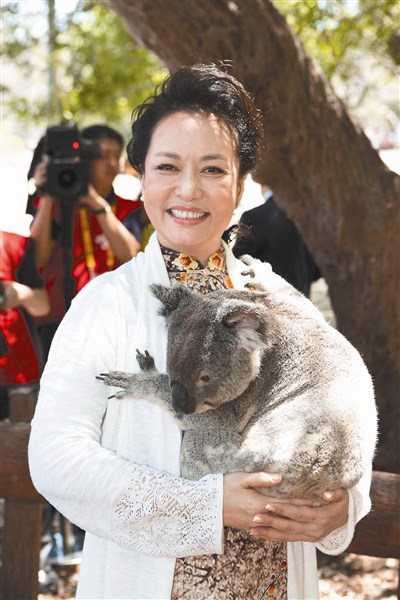 夫人閒情 中國大陸國家主席習近平赴澳洲參加G20峰會,隨行的第一夫人彭麗媛十五日造訪一處無尾熊保育所,並抱著無尾熊拍照。