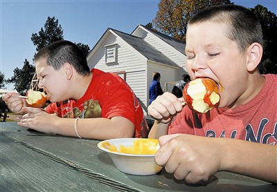 本周在敘利亞科巴尼難民營,兩名庫德族孩童擠在同一條毯子下取暖,食物也成問題(左圖)。日前在美國奧克拉荷馬州,兩名男孩享用焦糖蘋果(右圖),與中